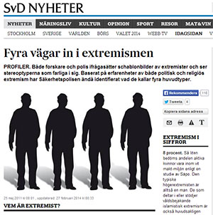 Svenska dagbladet har publicerat en artikel med rubriken fyra vägar in i extremismen och som diskuterar hur vanliga människor kan förvandlas till ett hot mot den rådande ordningen eller “demokratin”.