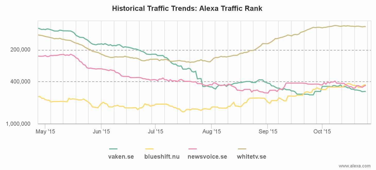 Två trender: Ett växande intresse för information som återfinns på sajter som whitetv.se och blueshift.nu, och ett avtagande intresse för övriga aktörer. En intressant iaktagelse som kan göras är att både newsvoice och vaken är de inofficiella språkrör makten utsett ur lägret paradigmskiftesflanken och som därför ibland kan ses i media.