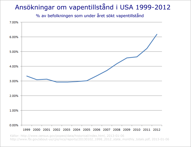 Diagrammet nedan visar hur den amerikanska allmänheten – trots alla de orkesterade “skolskjutningar” eliten iscensätter för att försöka förmå folk att ge upp deras rätt att bära vapen – går i precis motsatt riktning och lämnar in allt fler begäran om bakgrundskontroll för vapen. |
