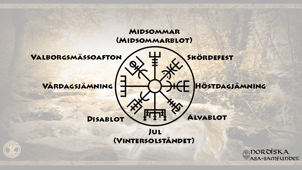 Bilden nedan visar de åtta stora högtiderna inom Asatron.