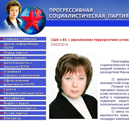 On behalf of the Progressive Socialist Party of Ukraine, we declare that we do not recognize the legitimacy of this coup, and do not recognize as legitimate the activities of the new Ukrainian authorities. We condemn the total violation of the rights and freedoms of the citizens of Ukraine on national, ethnic and cultural, religious and political grounds.