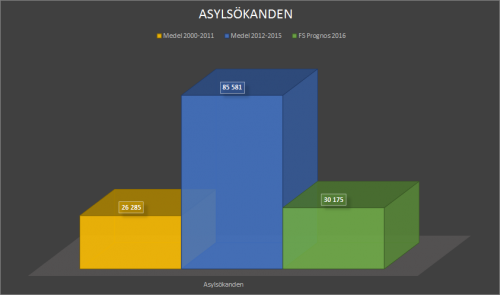 Vi ser av grafen nedan att antalet asylsökanden för 2016, enligt Fria Sidors prognos, 30175, är högre än nästan alla år utom de hysteriska 2015, 2014, 2013 och 2012. Bara under 2015 kom det lika många asylsökanden som under nio ”normalår”. Stefan Löfven, påhejad av Anna Kinberg-Batra, trycker då inte bromsen i botten utan sänker farten till den högst tillåtna, igen. Det är vad DÖ-alliansen menar med att nu ha ”kontroll”. Svensk politik är en sorglig historia.