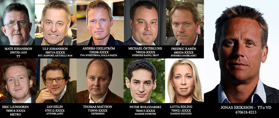 Nedan: de nyckelpersoner inom svensk riksmedia som mer än några andra bär det operativa ansvaret för totalcensuren av händelserna i Geldermalsen 2015 – ett Europas och Hollands eko av Sveriges Ådalen 1931.