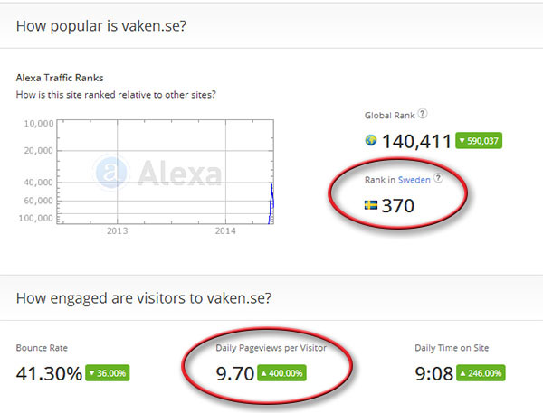 Vi tror i dag inte att Vaken kommer att svara och presenterar därför nedanstående uppgifter som kastar ljus över Vaken:s Alexa-rankning.