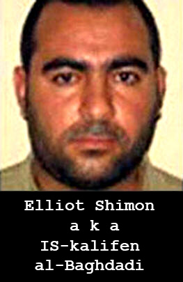 Ovan: den judiske MOSSAD-officeren Elliot Shimon, bättre känd som Kalifen för IS – al-Baghdadi.