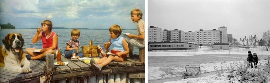 Det socialdemokratiska Folkhemmet är lika med miljonprogrammet. Det var då man planerade för att tömma landsbygden, lägga ner byskolorna och sätta alla i små boxar i höghuskomplex tätt packade som sillar. Barnen fick springa på asfalt istället för på grusvägen på landet. De fick leka på en konstruerad lekplats istället för att ha hela landskapet att utforska. De fick bo i tre r.o.k. istället för i torpet och de fick då och då kontakt med sina mor- och farföräldrar istället för att ha dem nära sig när andan föll på.