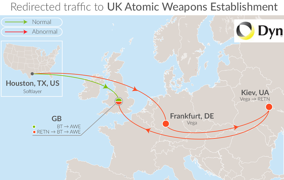 - A network error routed traffic for the UK’s nuclear weapons agency through Russian telecom