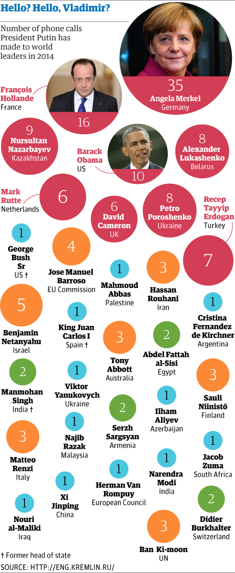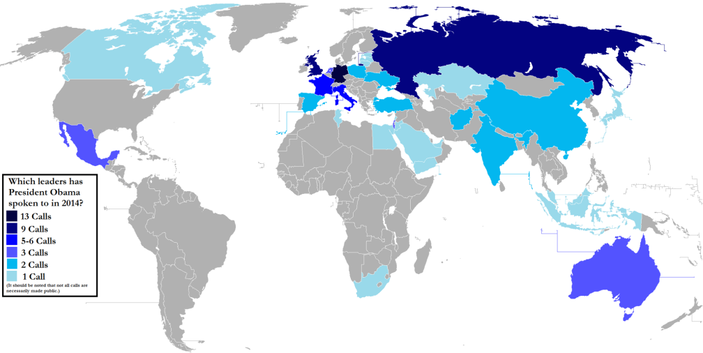 Bilden nedan är någons sammanställning över vilka stats- och regeringschefer USA:s president Barack Obama ringt under 2014.