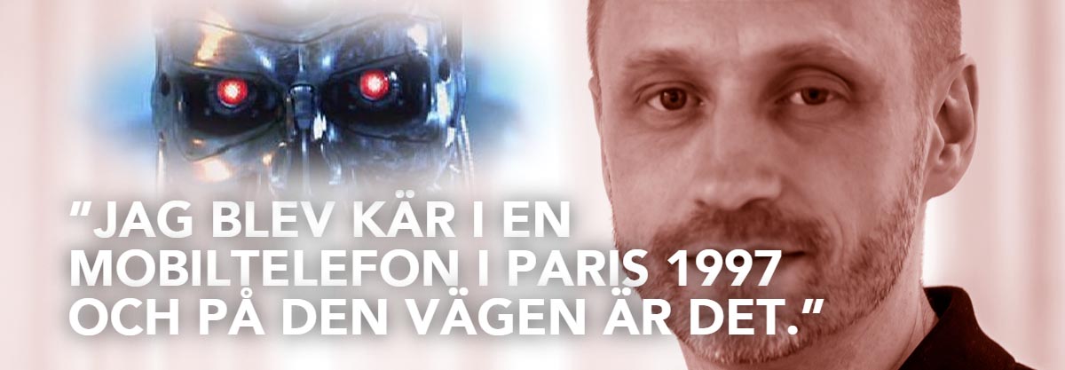 Svaret ges på företagets hemsida: en avdankad hubot som 1997 blev olyckligt kär i en mobiltelefon från Paris. Måhända var skälet till att förhållandet inte utvecklades att huboten Andreas har mindre liv i blicken än 1984 års Terminator-modell T800…