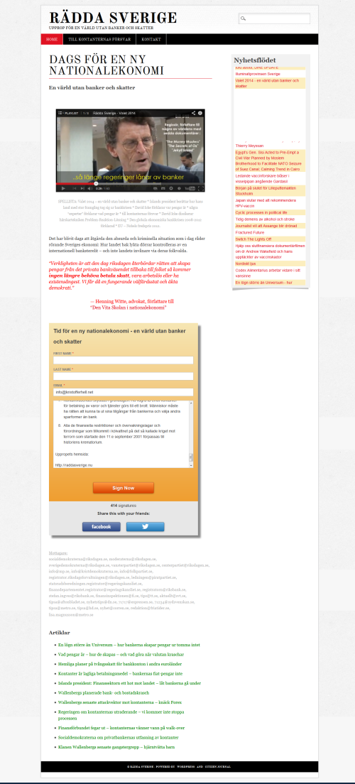 Uppropet låg initialt på den här sajten, blueshift.nu. Den flyttade senare över till raddasverige.nu, som under ett par år var blueshifts aktivitsportal – online uppropen var fler än krav på kontanternas skydd.