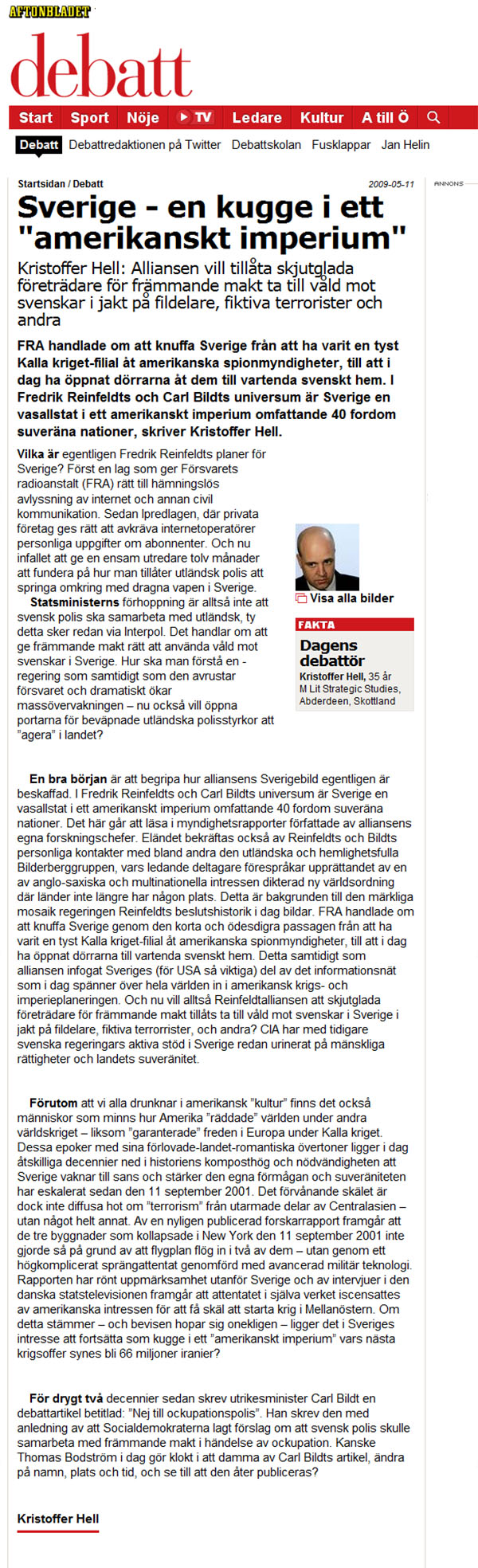 Med anledning av övningarna länkar vi nedan till en debattartikel Aftonbladet publicerade 2009-05-11..